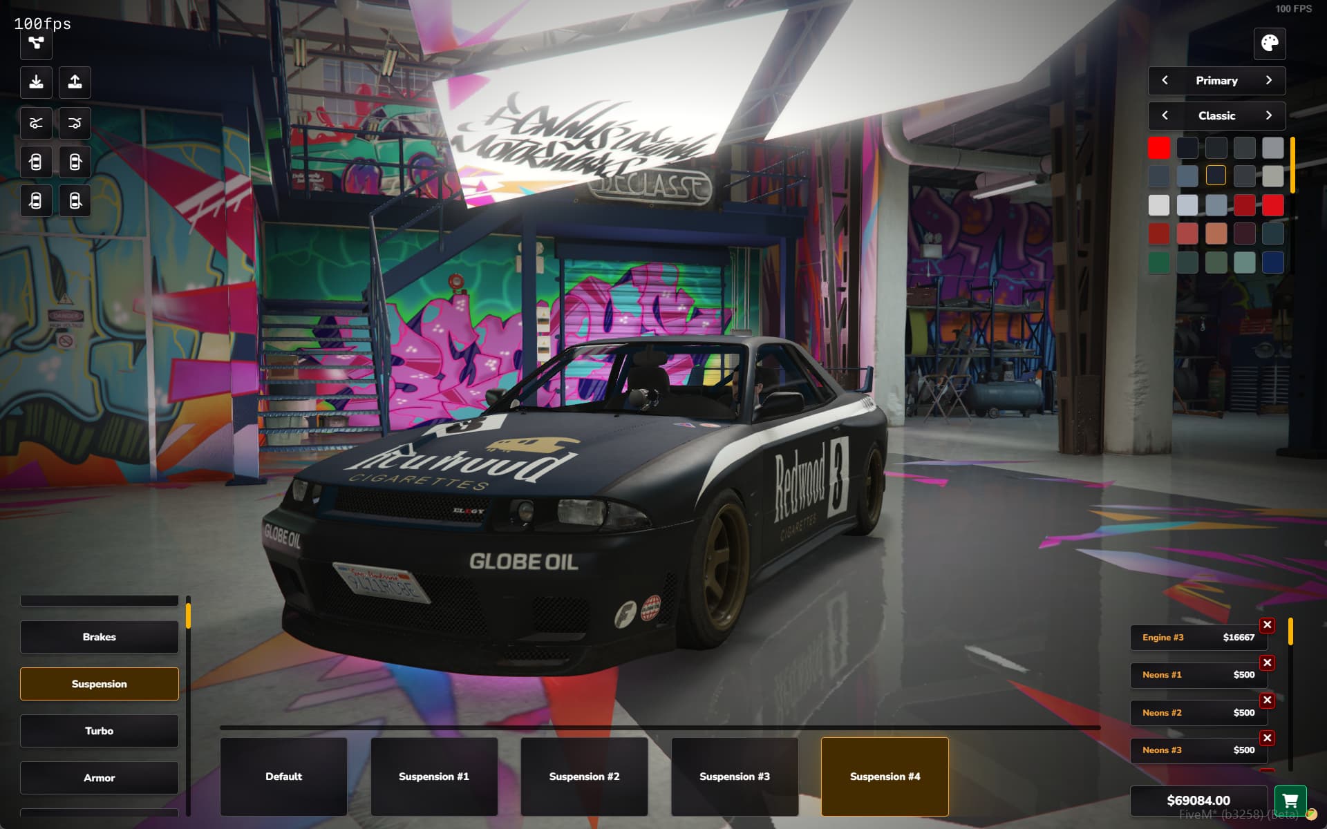 UnknownImprove your FiveM server with this easy-to-use Tuning Menu. Players can quickly upgrade their vehicles, changing engine power, handling, brakes, and more. They can also easily customize the look of their cars with new colors, wheels, spoilers, and body kits.
