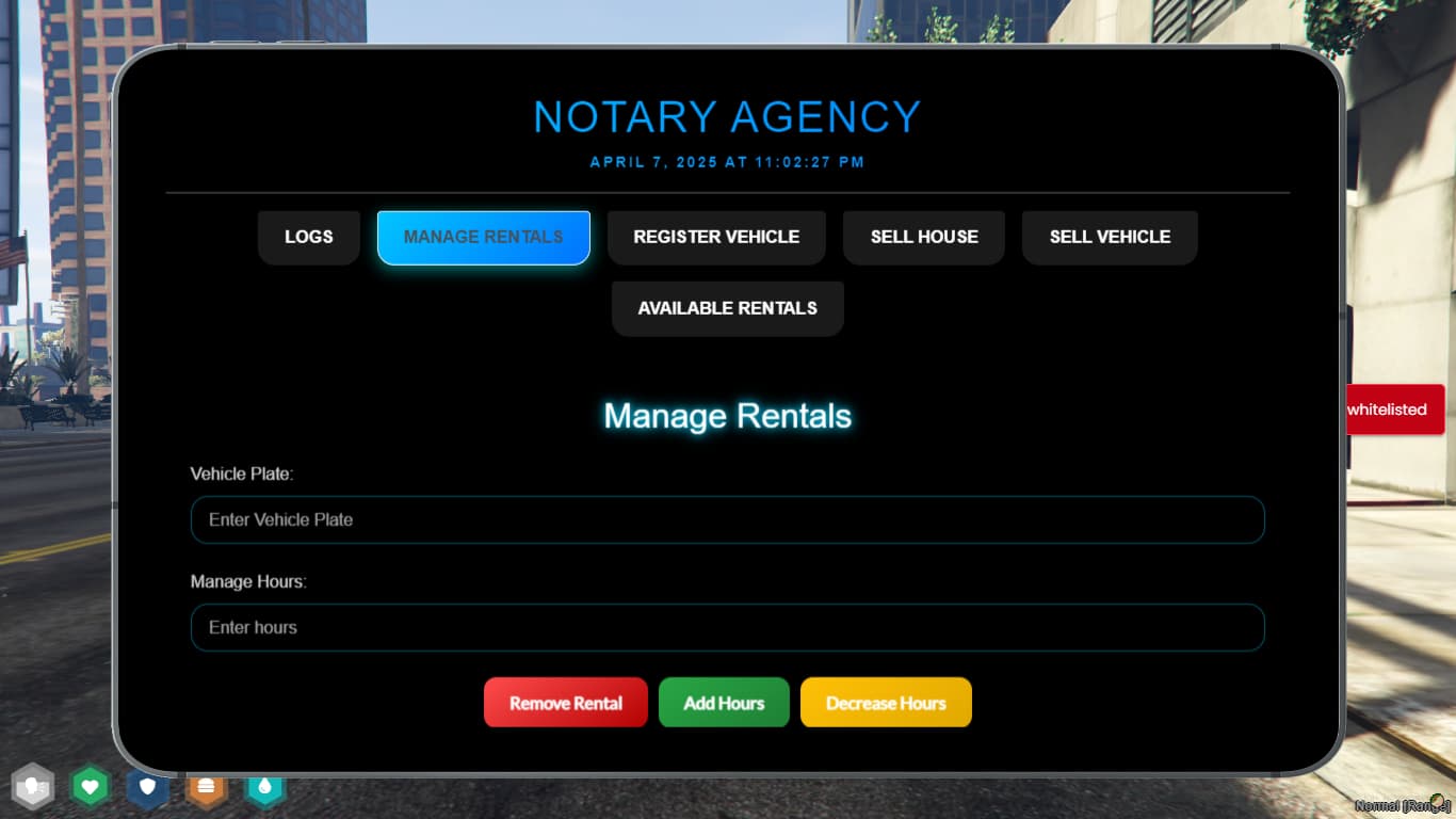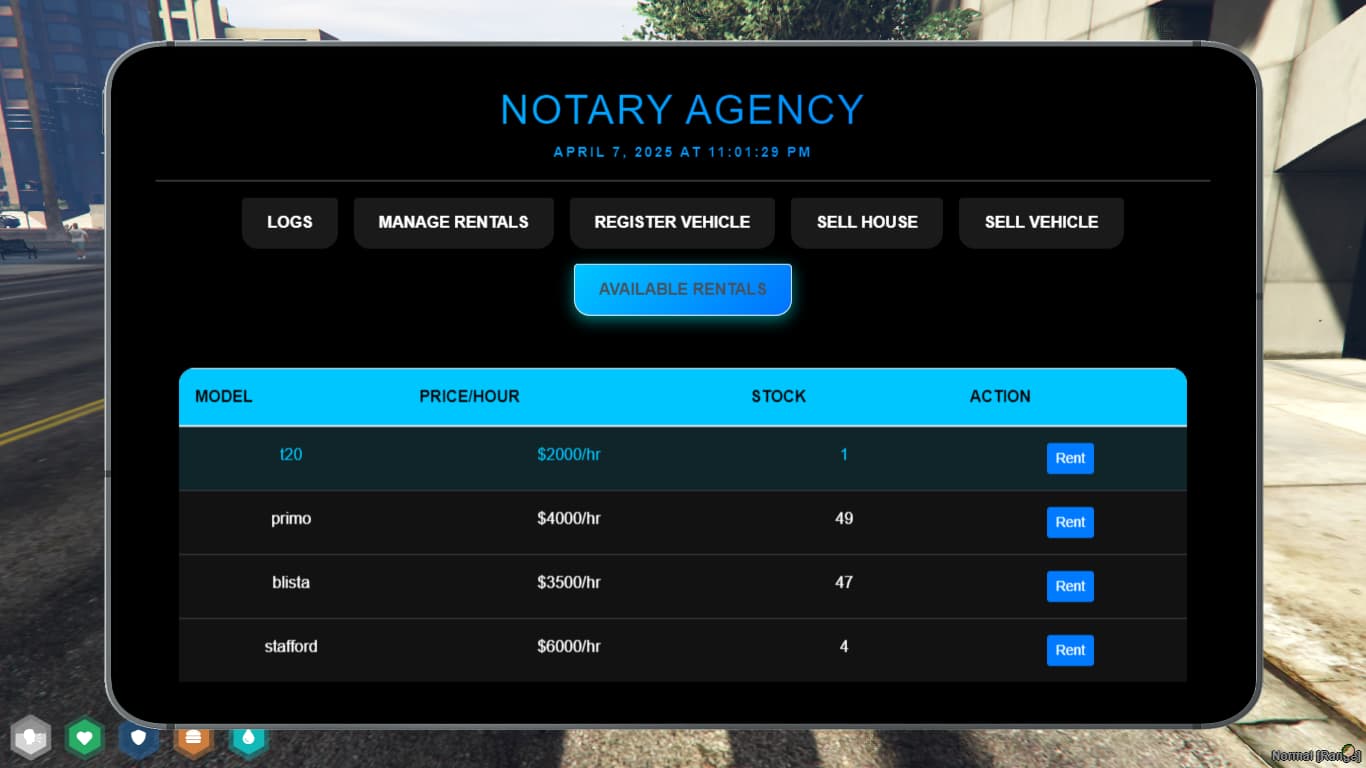 Take your roleplay experience to the next level with our advanced script designed for seamless vehicle rentals, property sales, and administrative control—all from an intuitive interface