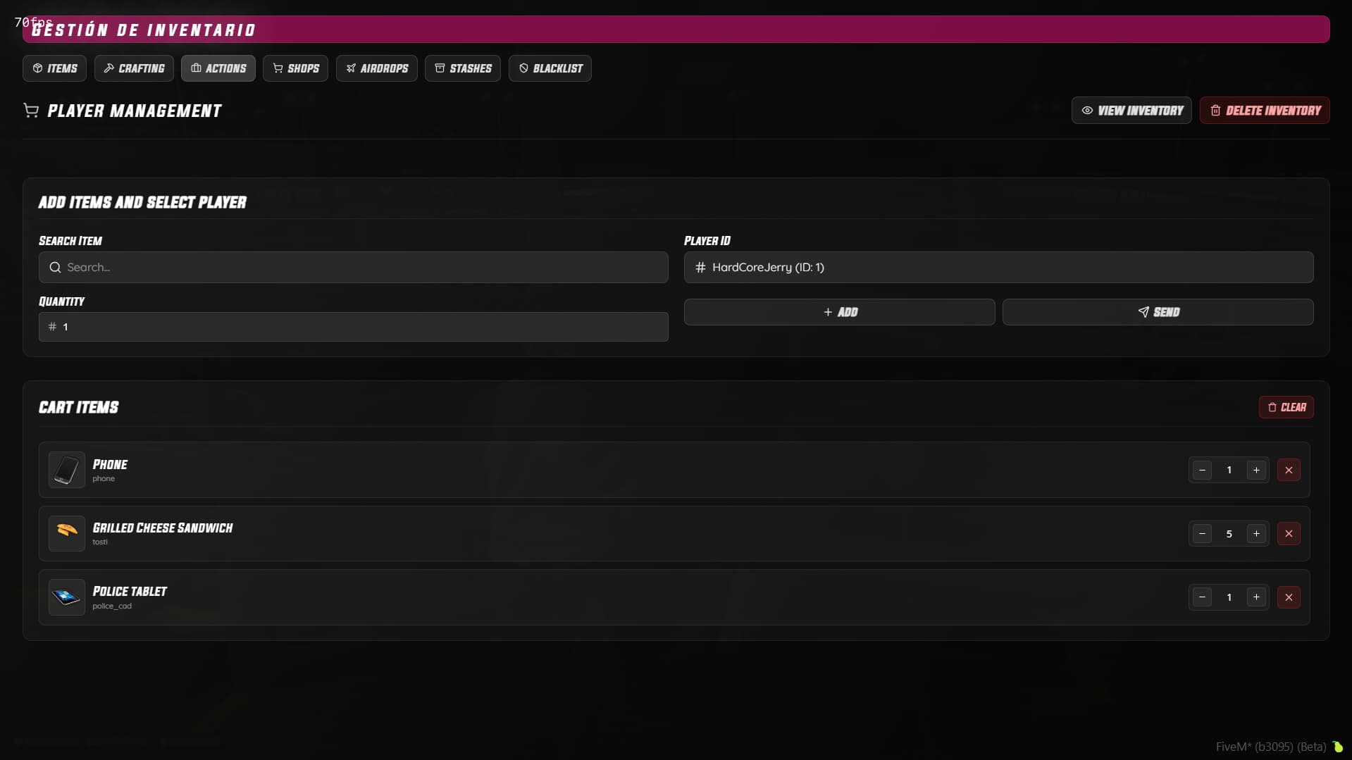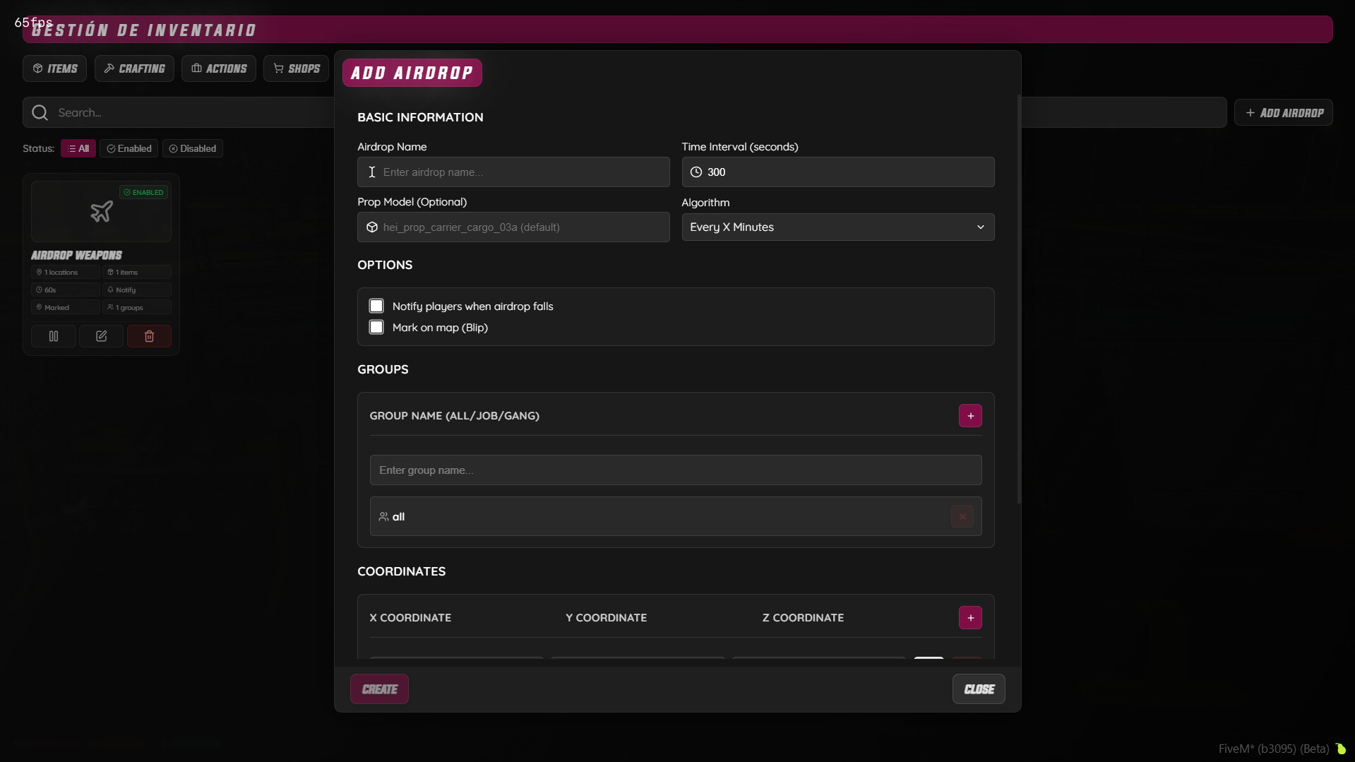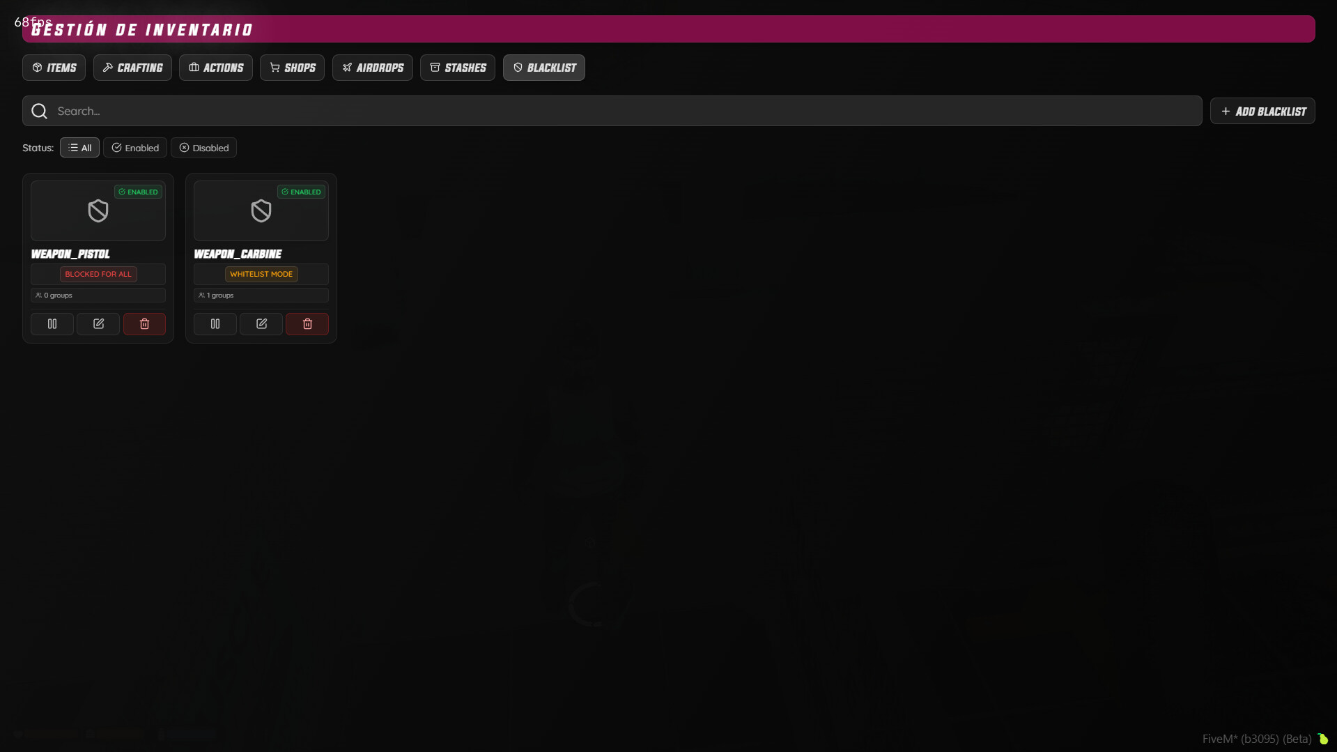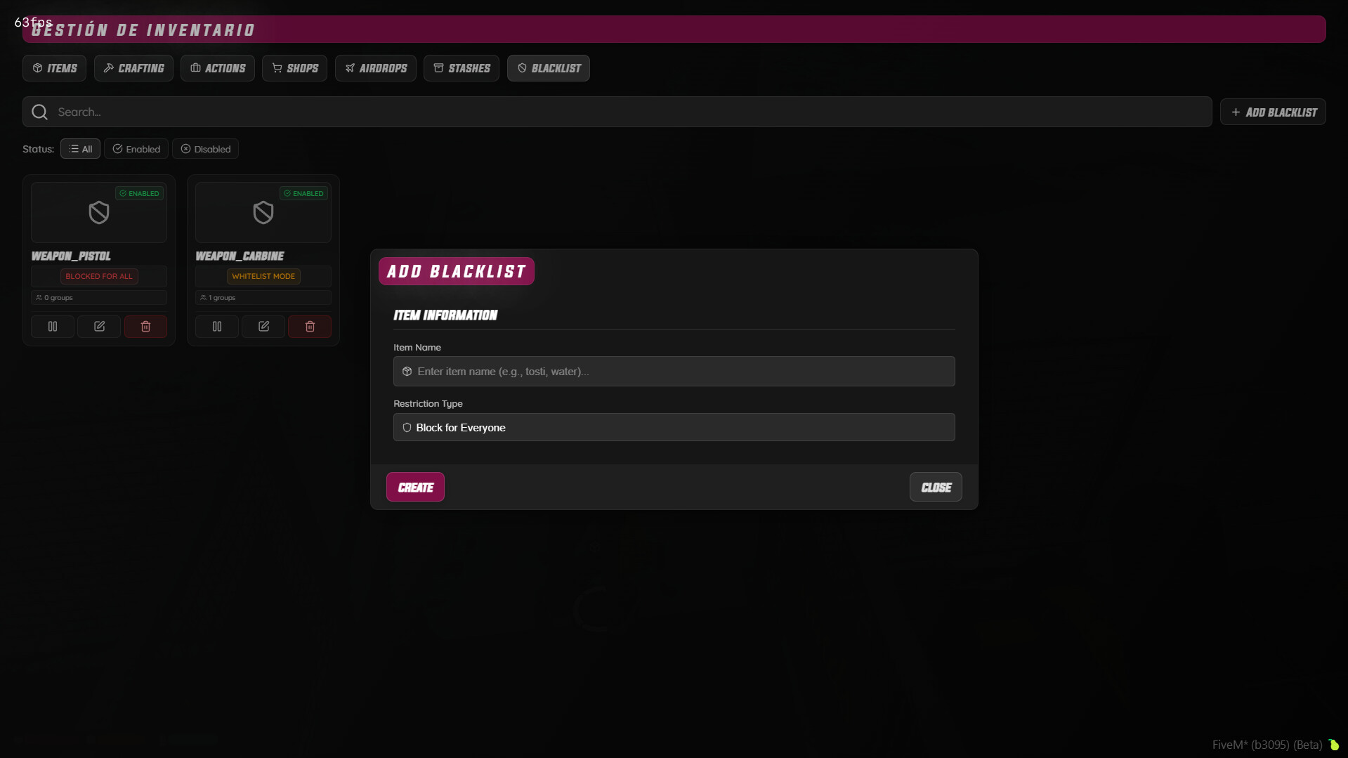 Includes an advanced blacklist system, allowing only certain jobs or gangs to use specific items — for example, special weapons only for police, or Micro Uzi exclusively for the Families gang.