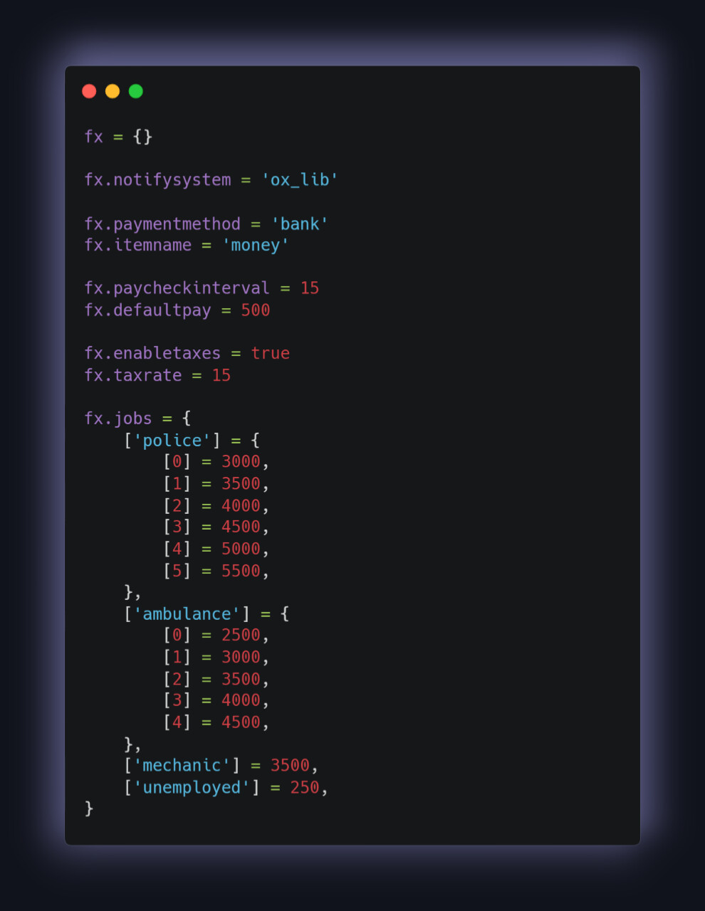 4. Add ensure fx_paycheck to your server.cfg.