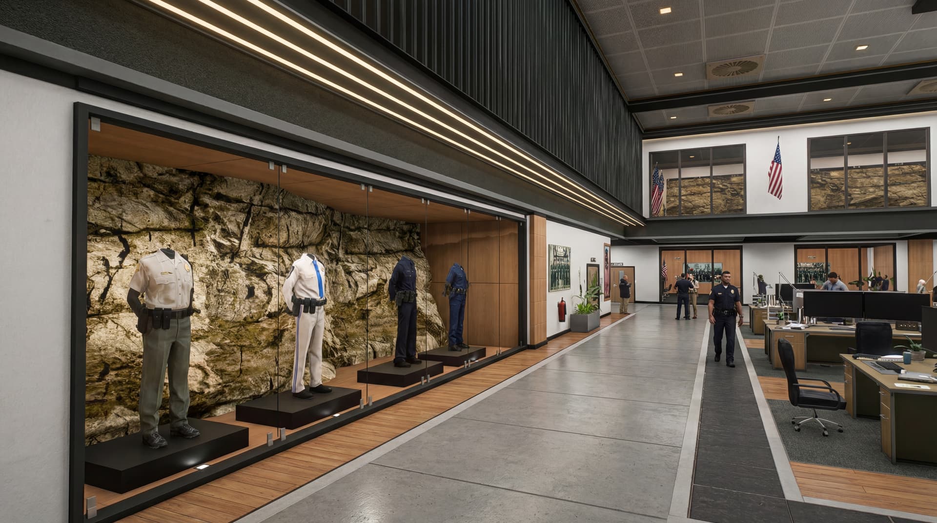 A next-generation police headquarters built for serious RP servers, featuring real-time department switching, live interior theme swapping, and a civilian-to-officer workflow layout designed for immersive roleplay.