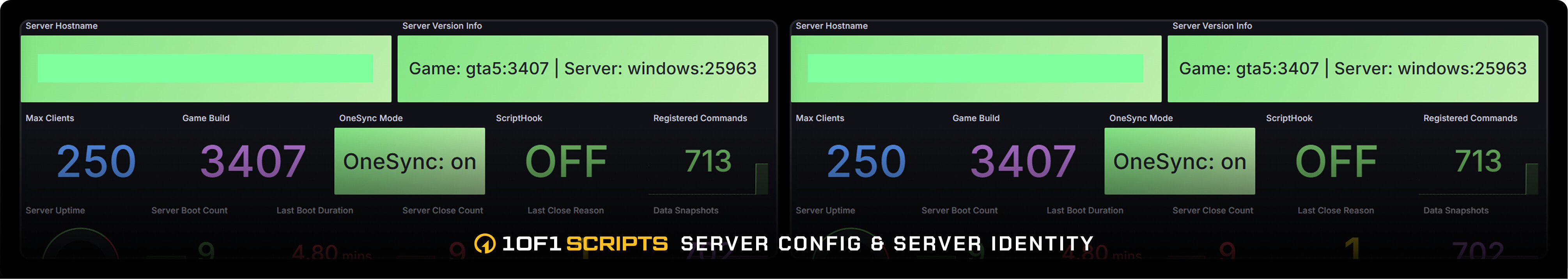1of1 Prometheus Monitoring gives you OVER 70 deep, actionable FiveM and txAdmin telemetry stats with a clean Grafana workflow so you can identify problems fast and keep your server stable under load.