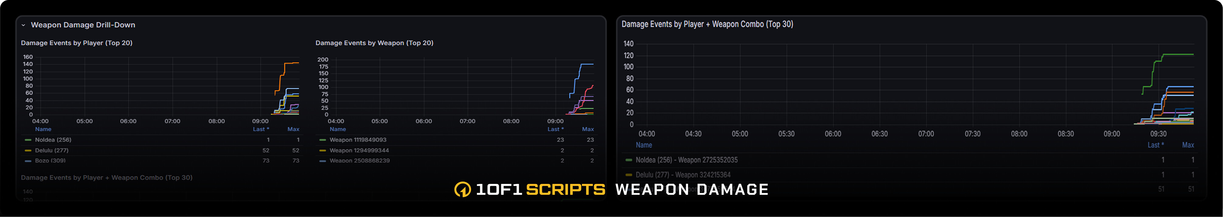 - Gameplay Monitoring: state bags, game events, vehicle/player health, weapon drill-down