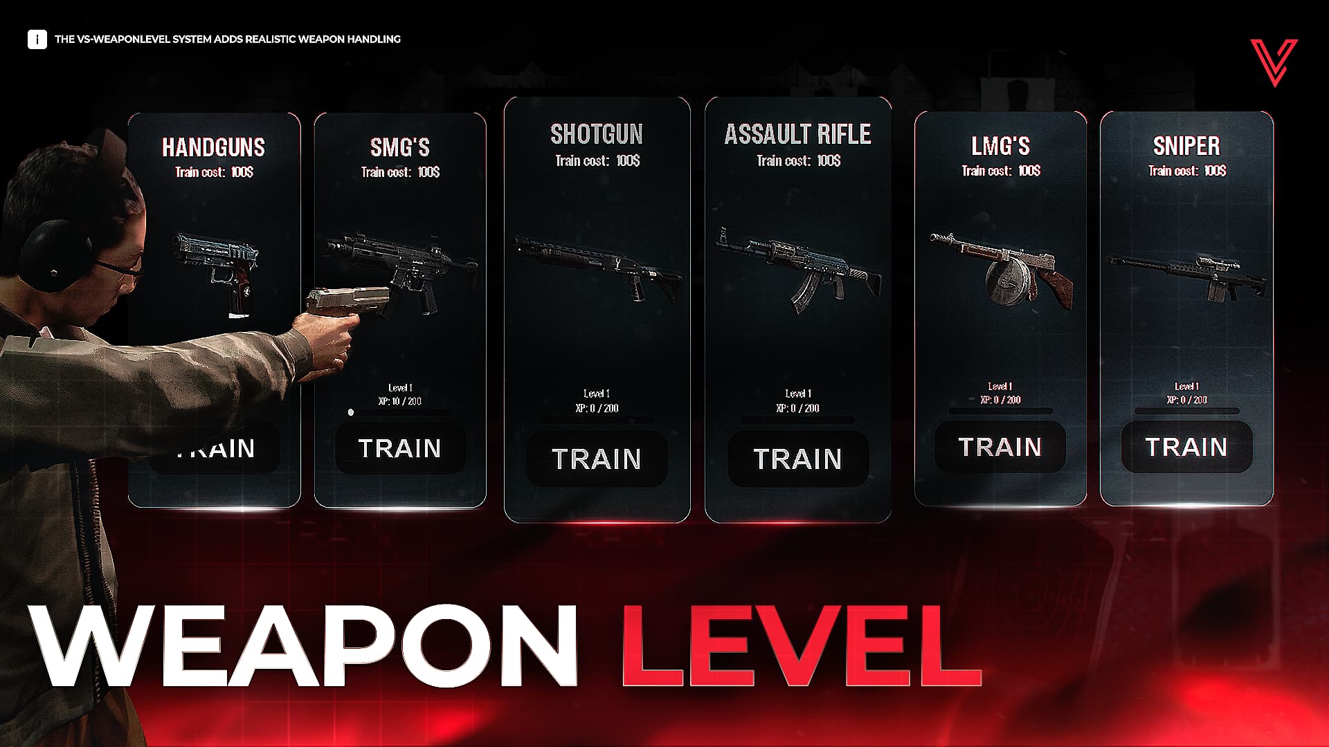 vsWeaponLevel – Weapon Skill & Recoil Training System for FiveMBring progression, skill development, and realistic weapon handling to your FiveM server.