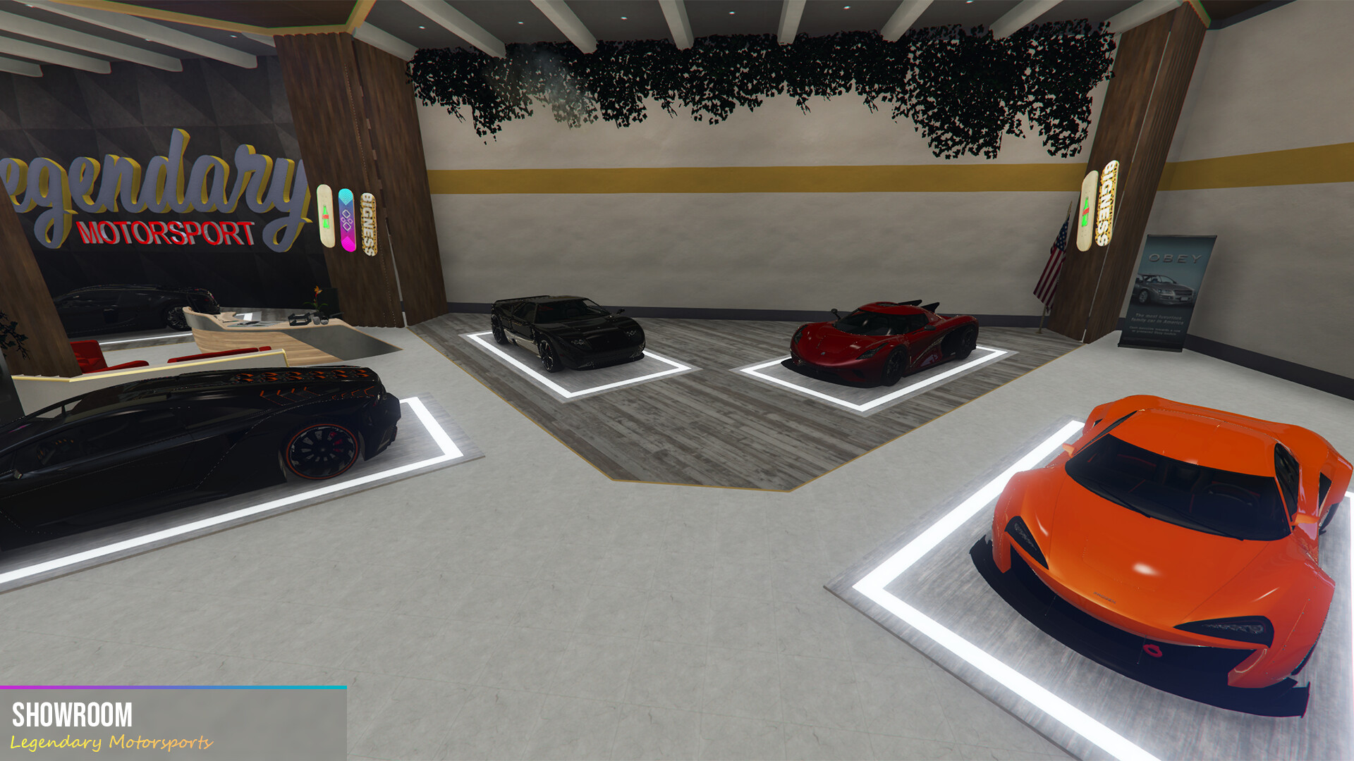 Legendary Motorsports is a car dealership located in Little Seoul. The facility includes a spacious showroom, an inviting lobby, seating areas for customers, and 15 parking spaces. The central location in Little Seoul ensures convenient access and top-notch service.