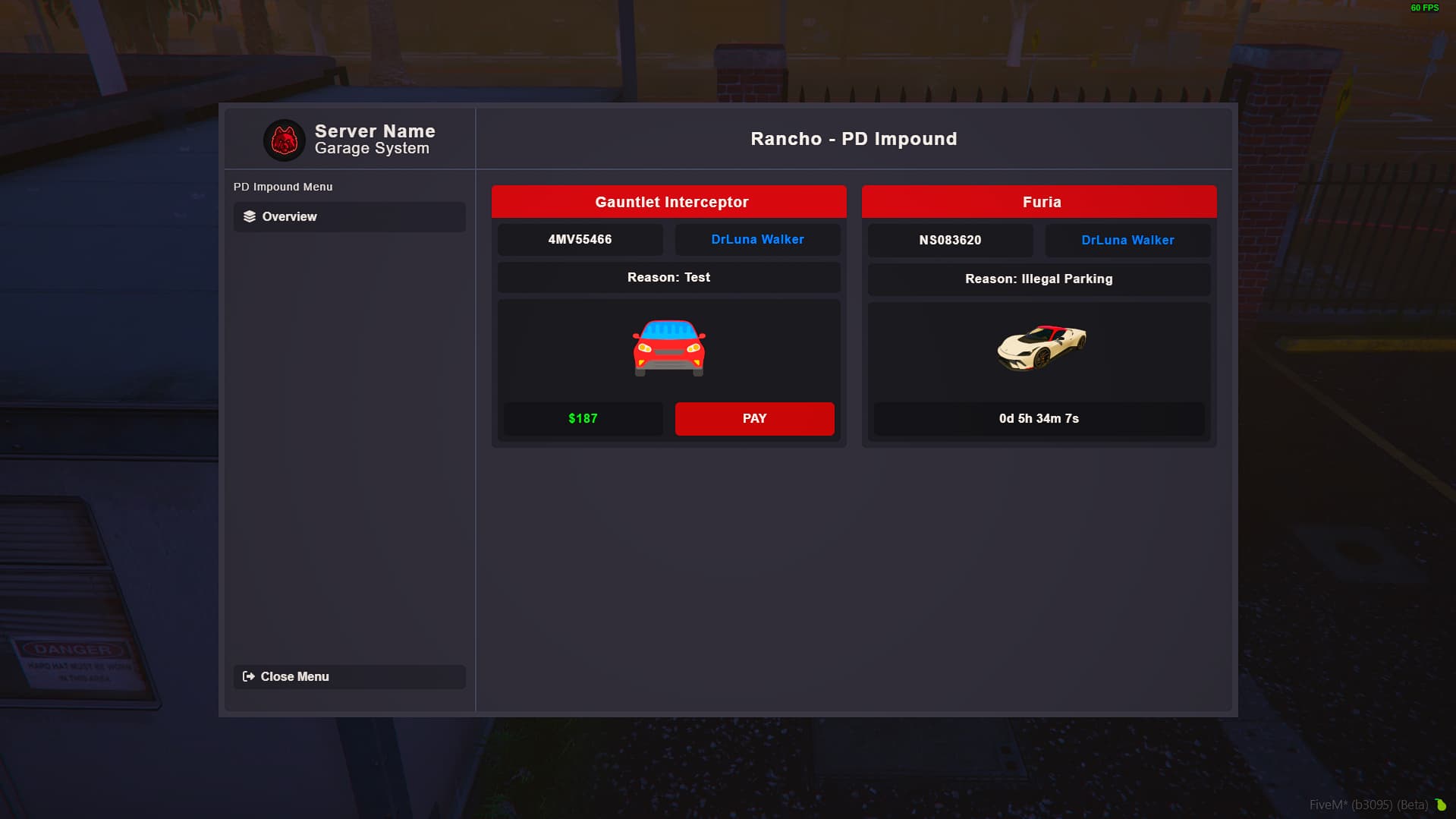 - Your Vehicles Overview with State of it (Impounded by Police, Impounded Normal, Not Parked, …)