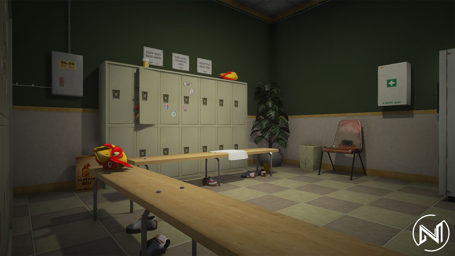 UnknownThis map is located in Vinewood. The model incluedes different sitting areas, counter, kitchen, storage, office, dressing rooms and toilets. Cluckin’Bell is a fastfood restaurant in the GTA lore, the design is based on the original Cluckin Bell aesthetics and designs. This map incluedes all these in one pack.