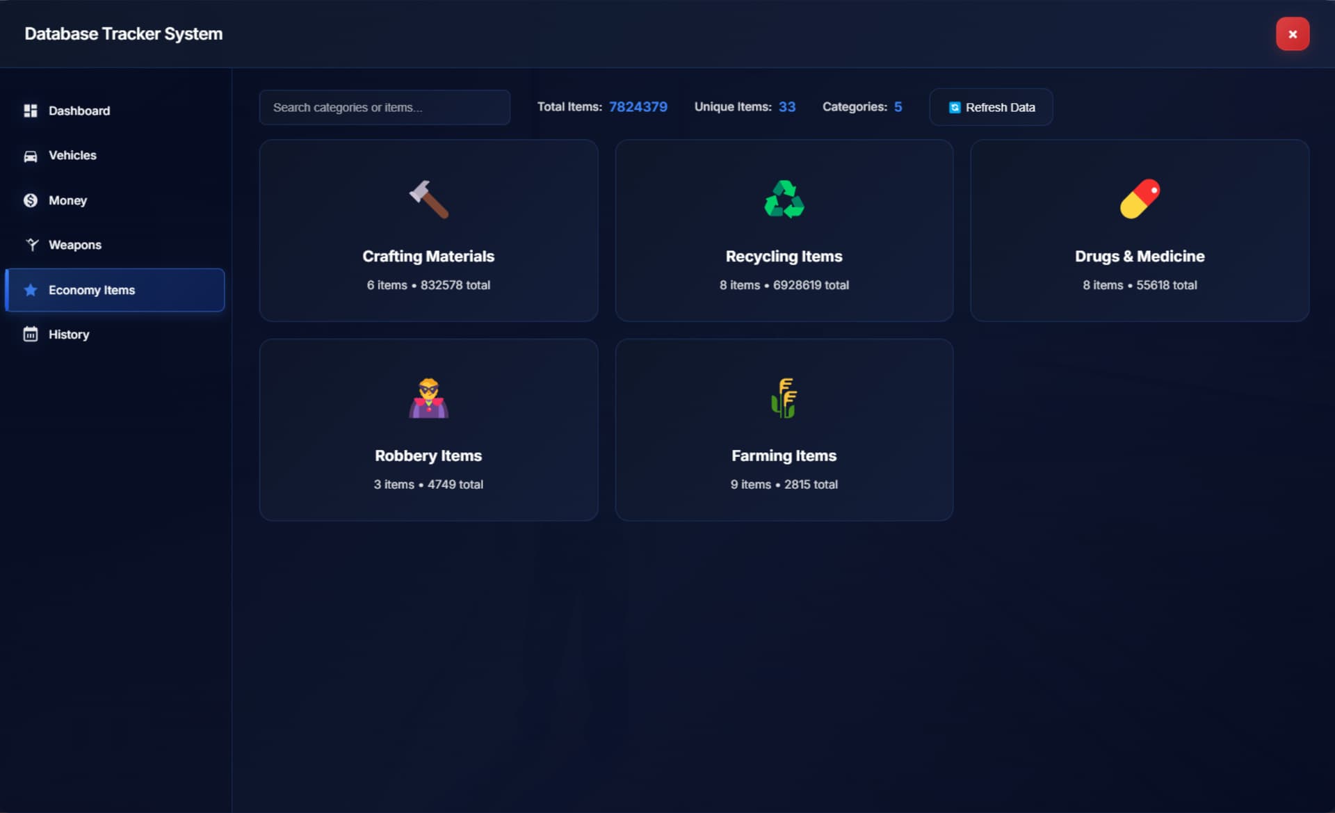 UnknownIntroducing the most advanced Database & Economy Tracker System for FiveM (QBCore / ESX / Qbox).