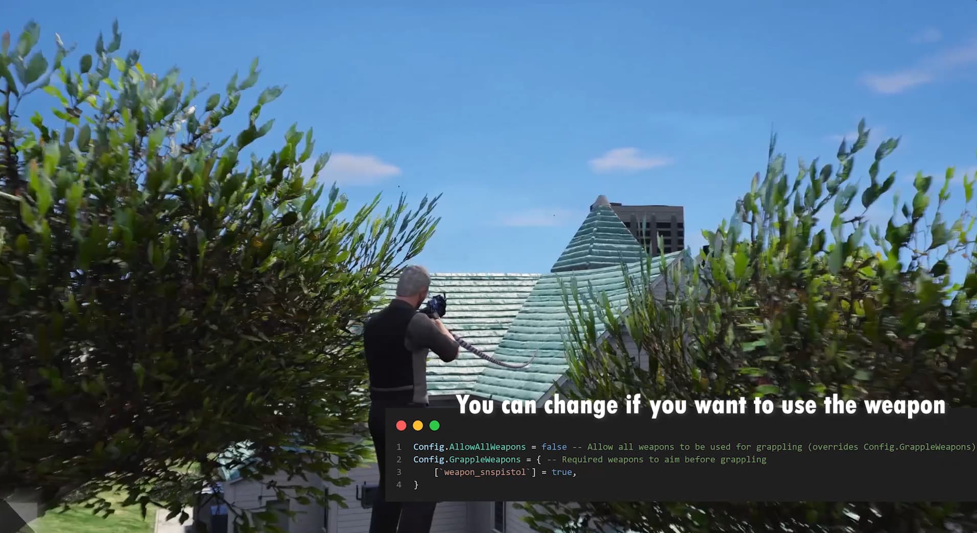 Config.GrappleWeapons = { [`WEAPON_SNIPERRIFLE`] = true, } – Specify which weapons can be used for grappling.
