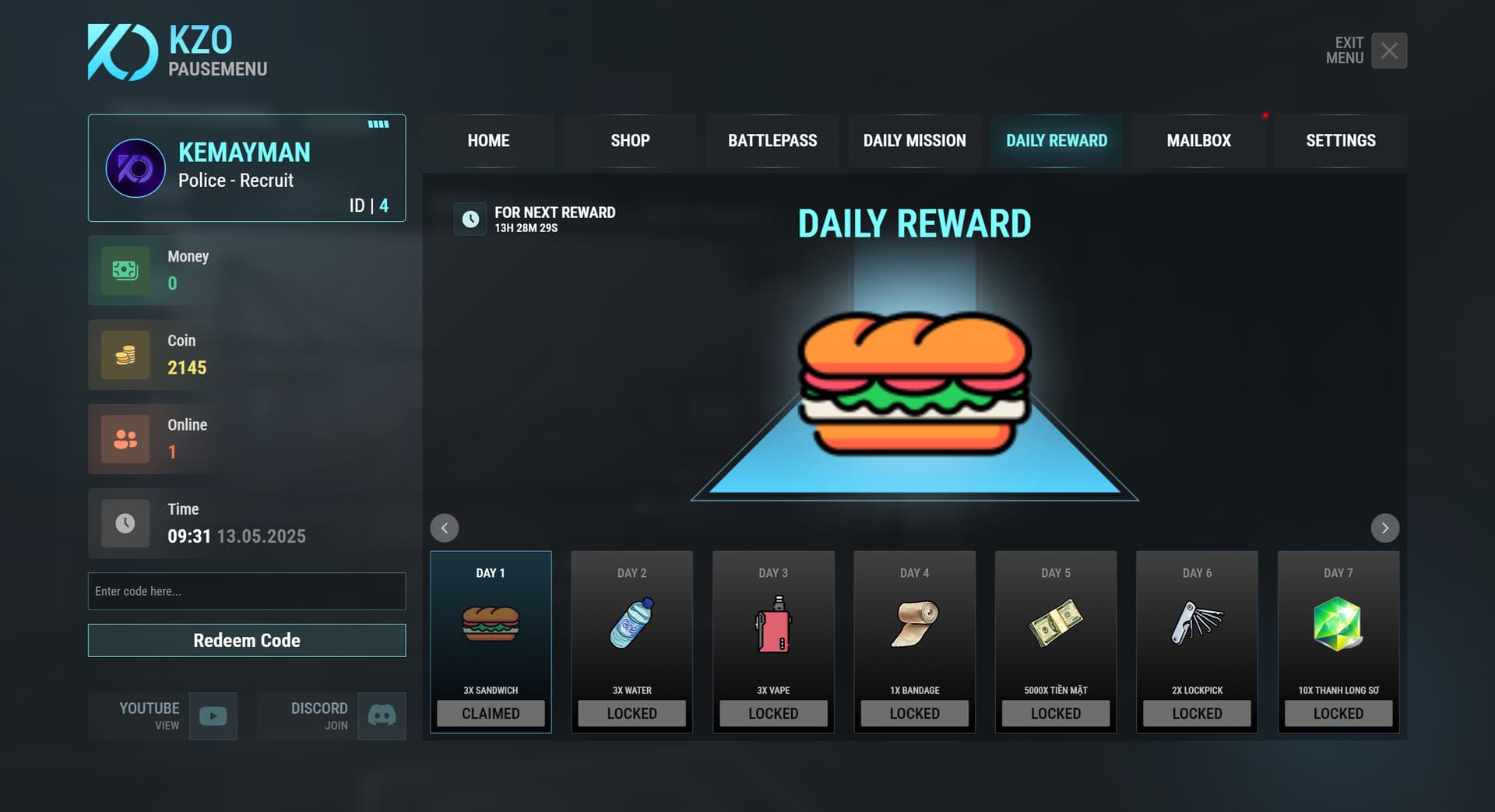 [PAID] [ESX/QB/QBX/STANDALONE] kzo_pausemenu | Donate Shop, BattlePass, DailyReward, Case Opening, GiftCode,... All In One | Advanced PauseMenu | 5 in 1