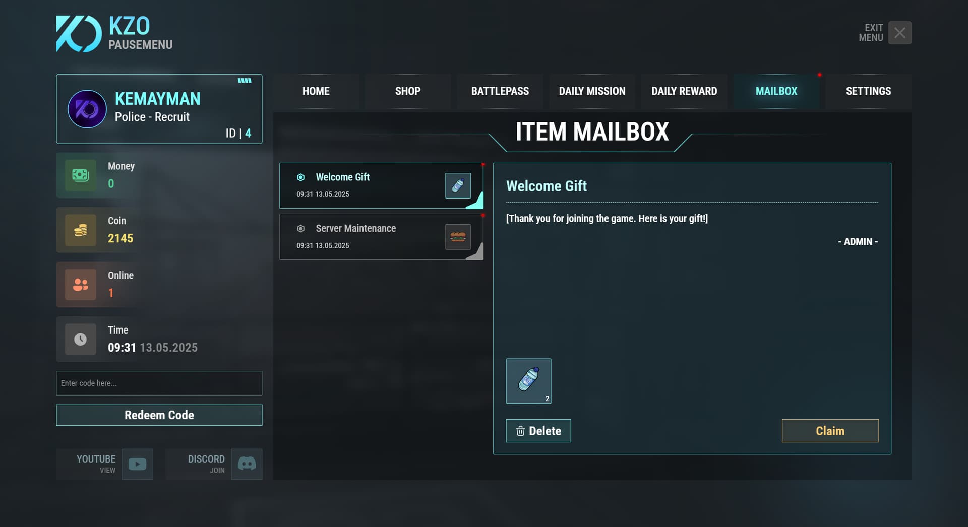 :rocket: [RELEASE] Advanced Pause Menu Script – Shop, Case Opening, Battle Pass, Missions & More!