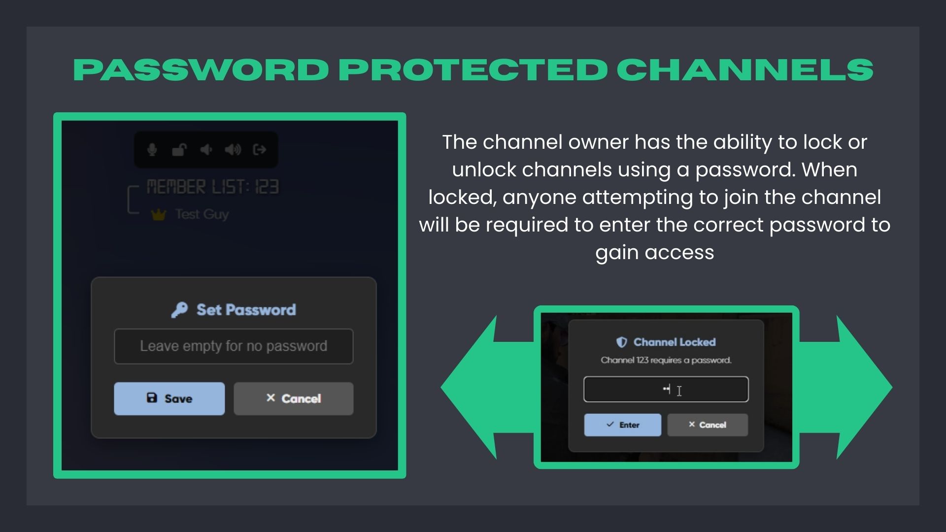 Channel owners can lock/unlock channels with a password