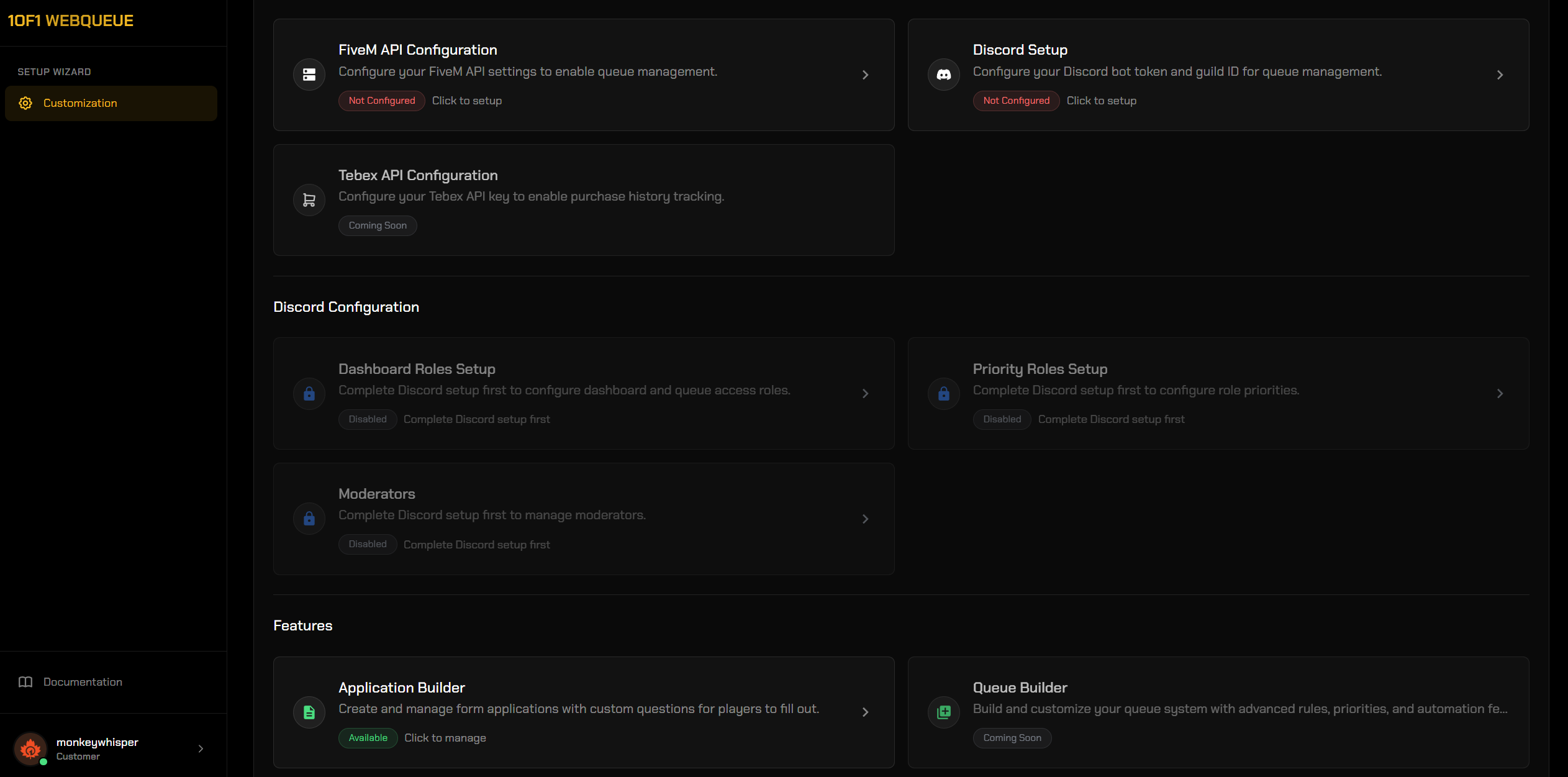 UnknownElevate your FiveM or RedM server with 1of1 Scripts Web Queue , the complete all-in-one solution for managing your community; easy to use, fully customizable, and built to handle your queue, applications, support tickets, and Discord automation in one place.
