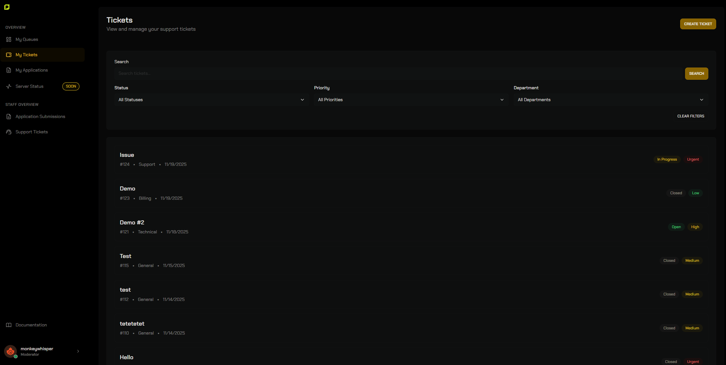 Built-in support tickets with search, filters, attachments, replies, and status updates. No external tools needed and easy for staff to manage in a clean and professional interface.