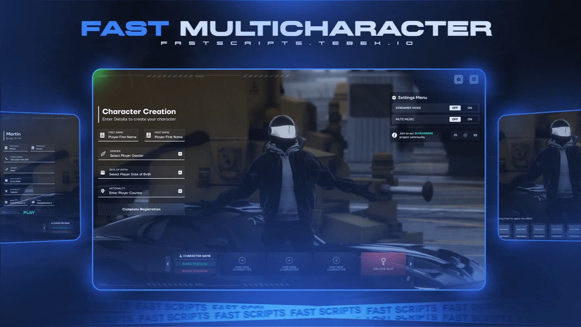 This system is fully compatible with FiveM QBCore & QBox ESX Scripts , allowing players to manage their characters, use slot-based systems, and personalize their gaming experience. It features a fast, smooth, and optimized interface.