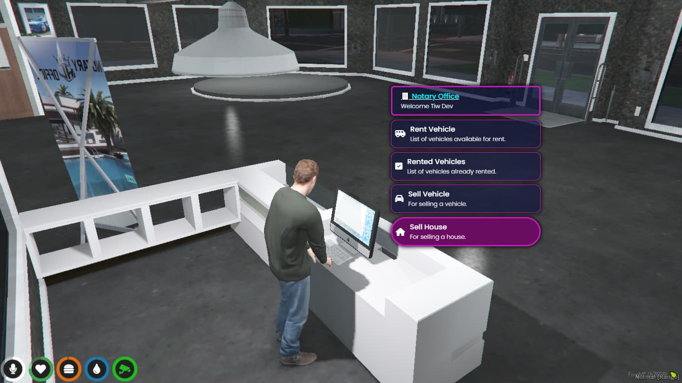 Tiw Notary Job is Best Notary Job OF ALL FIVEM with this script Able to rent cars or bikes with real time and at the same time able to put them in the garage, control the rented cars for extra days, or if a car was rented through a mistake, you can return it, selling cars from a car owner to a buyer by notary, selling houses from the owner of the house To a home buyer by notary, and more.