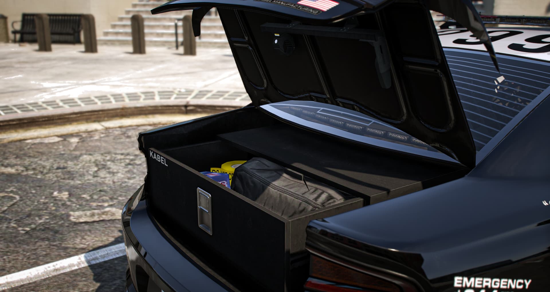 Interior loadouts: 50+ console/radio/siren controller/laptop setups, dash radar, divider/roof/trunk gun racks