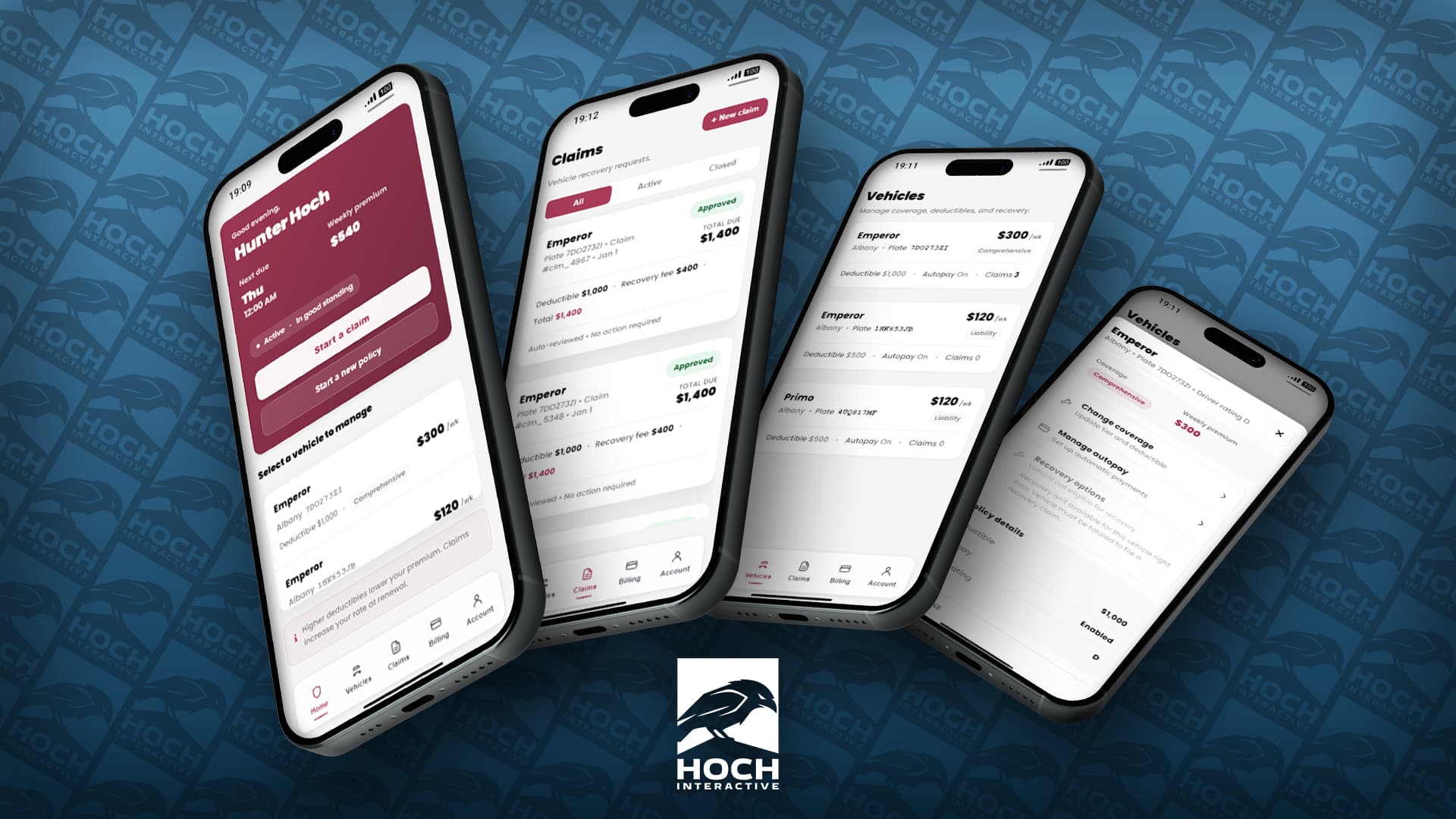 - Vehicles: Coverage, premium, deductible, autopay, claim count + quick claim shortcut