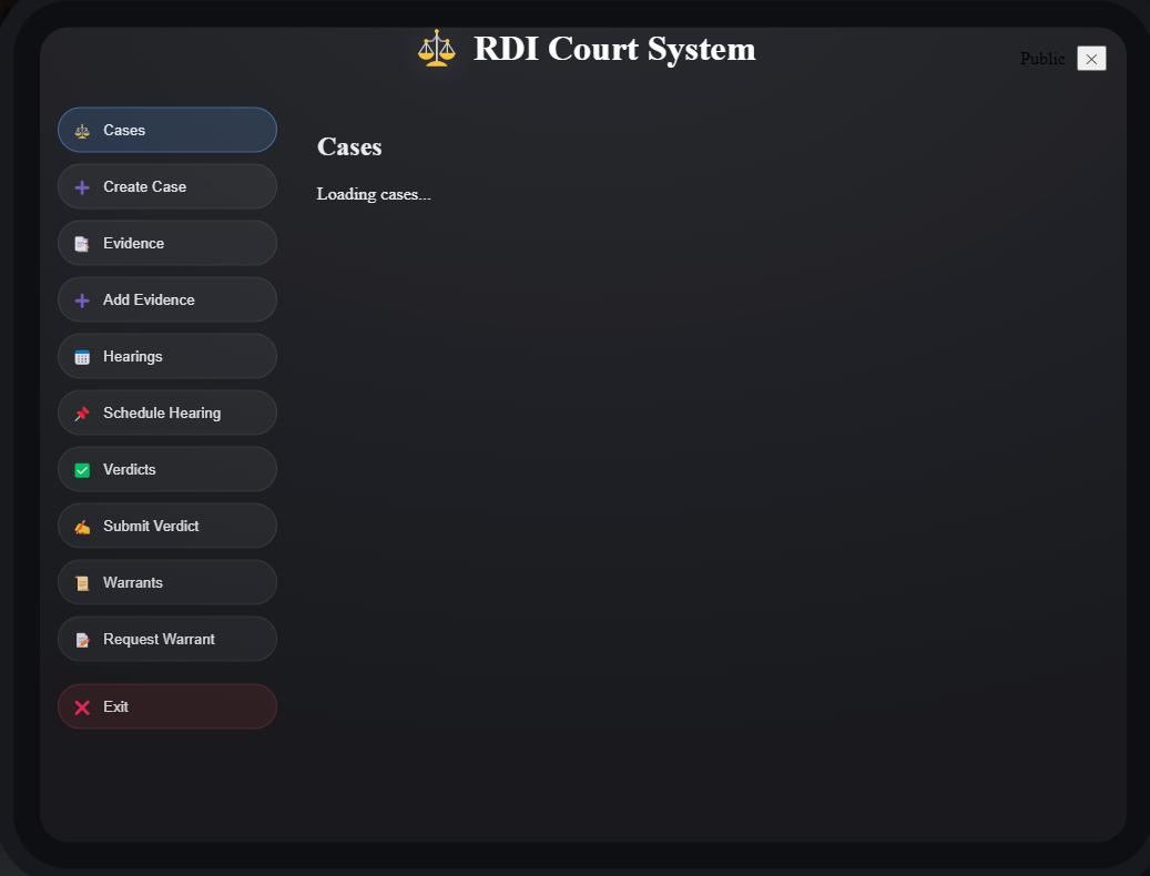 Role Badge: shows the userโs role (Judge/Police/Lawyer/Public).