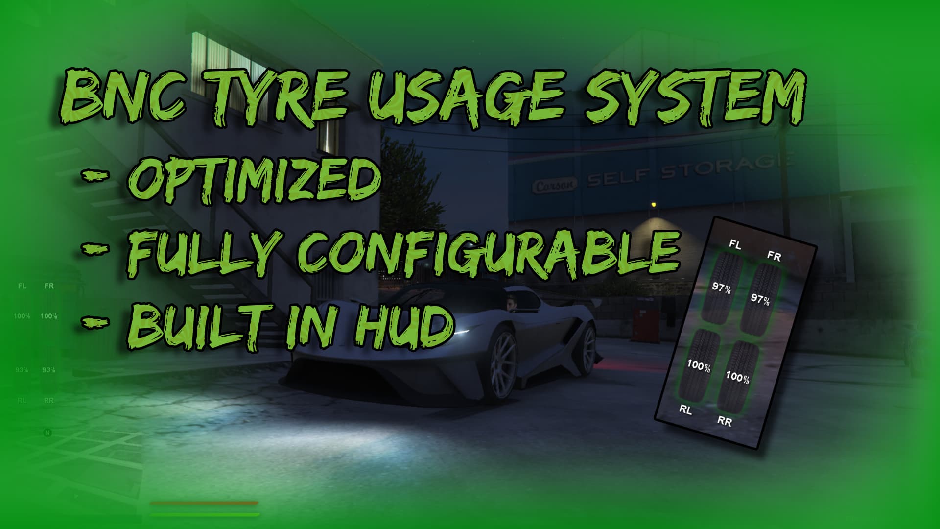 The BNC Tire Wear System introduces realistic tire degradation into your FiveM server. Over time, vehicle tires wear down based on driving distance and behavior. Players must monitor tire conditions and replace them as needed — or face reduced traction and vehicle control.