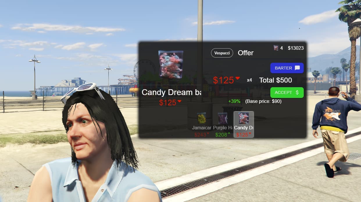 Previously the script fluctuated the prices only according to player sales but this resulted in an quiet feeling market. Now the prices always fluctuate while still being able to drop when players sell a large number of drugs.
