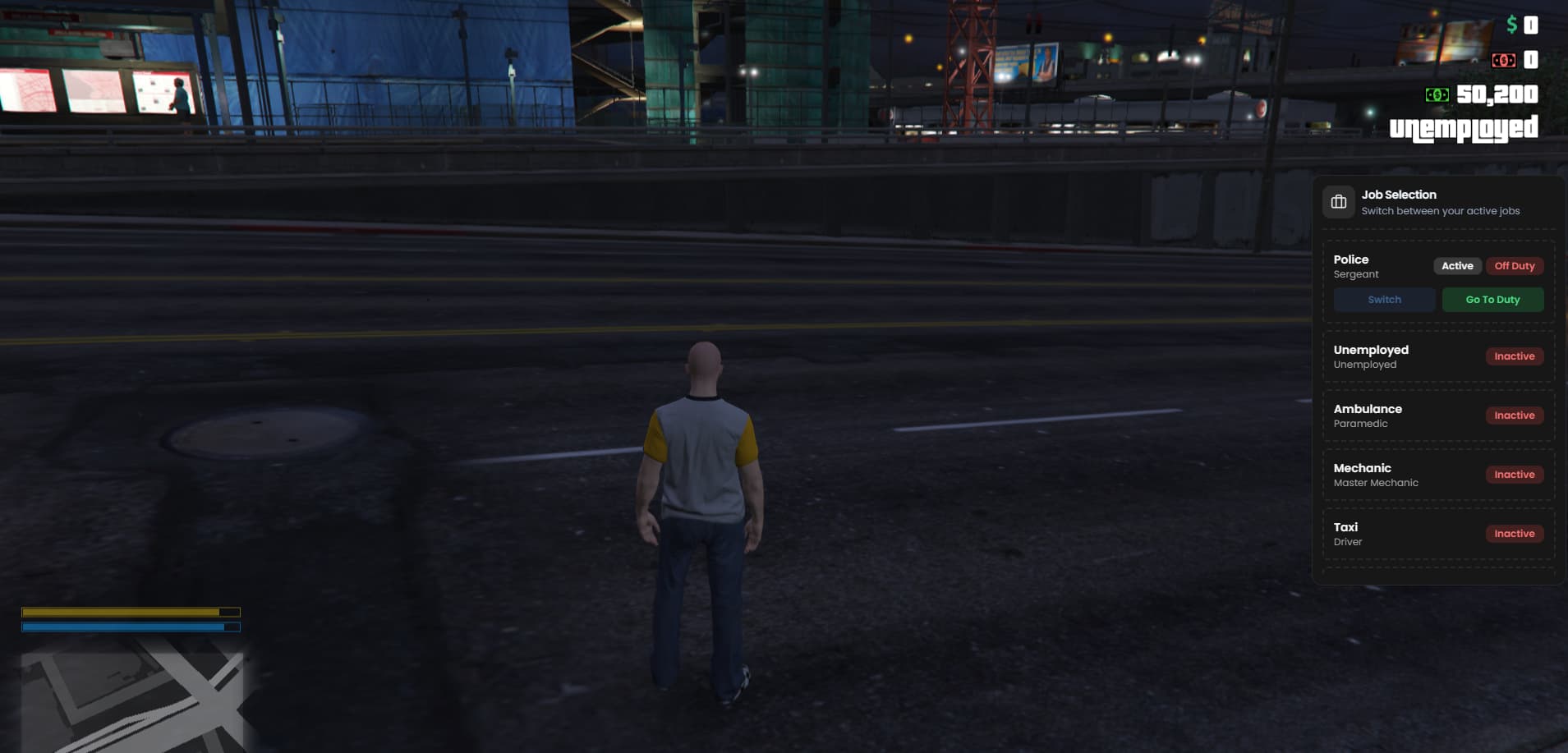 Manage multiple jobs with ease using a clean, modern UI and full framework support. Fully compatible with Advanced Duty V2 and Complete & Advanced Boss Menu — perfect for serious roleplay servers.