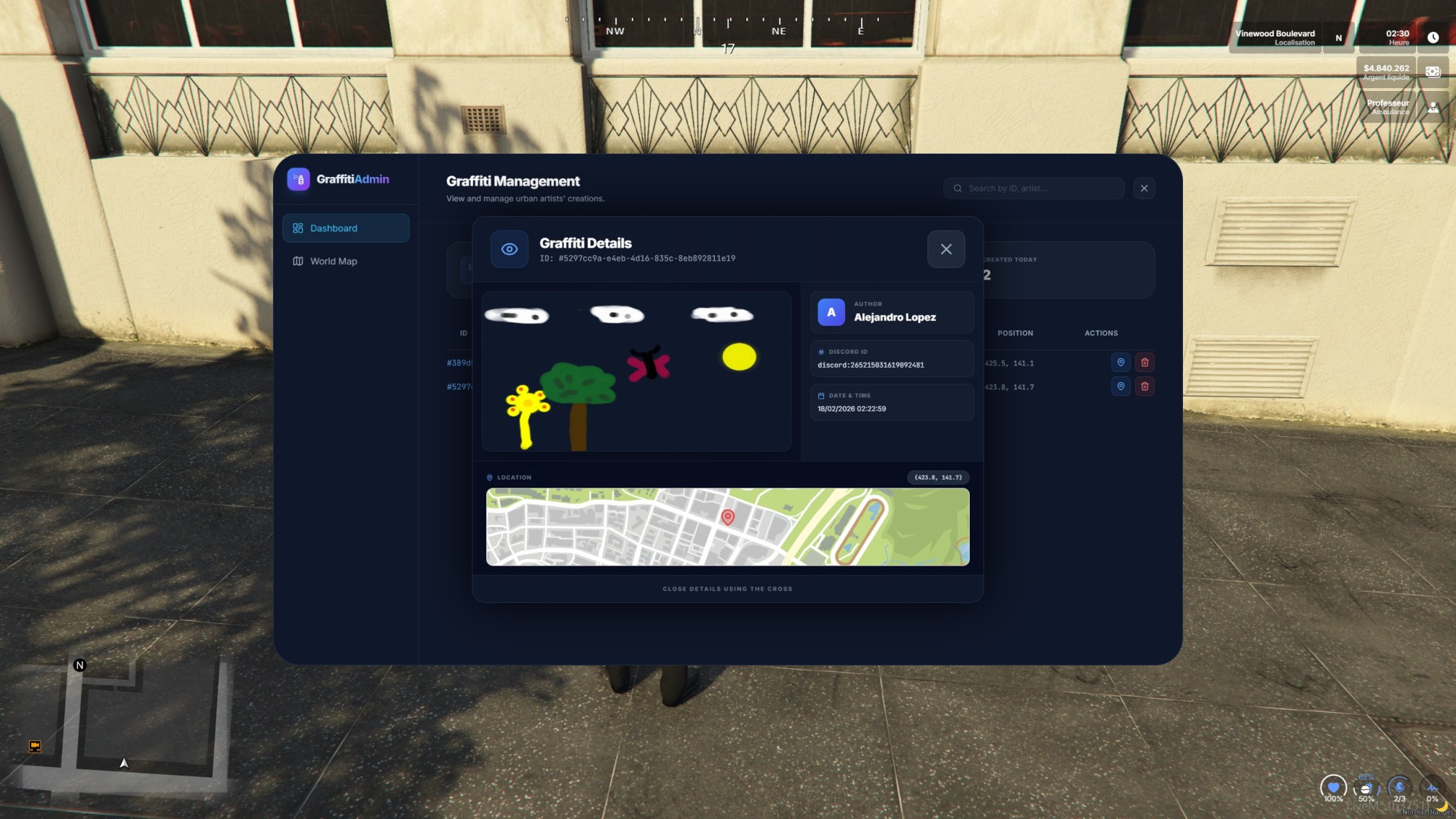 Vigi Spray offers a robust API for integrating with your own systems (Police alerts, custom gang turfs, etc.)