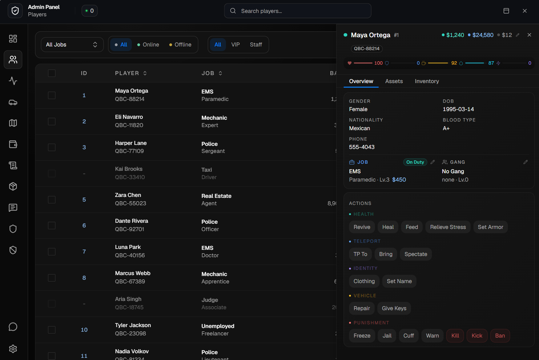 Resource integrations - support for managing data from popular resources such as lb-phone and similar plugins. This will allow admins to view information like owned phones, call history, transfer records, and other related data directly from the panel. Over time, more commonly used resources will be supported to provide a true all-in-one management experience.