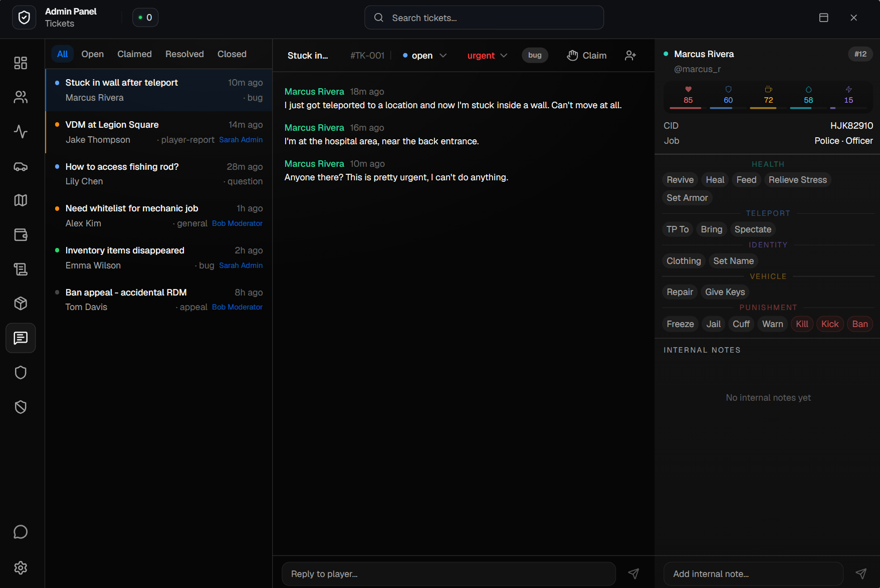 If your current scripts aren’t compatible with a specific admin function (revive, cuff, vehicle keys, etc.), simply open a ticket and share the relevant methods or documentation. We’ll add support.