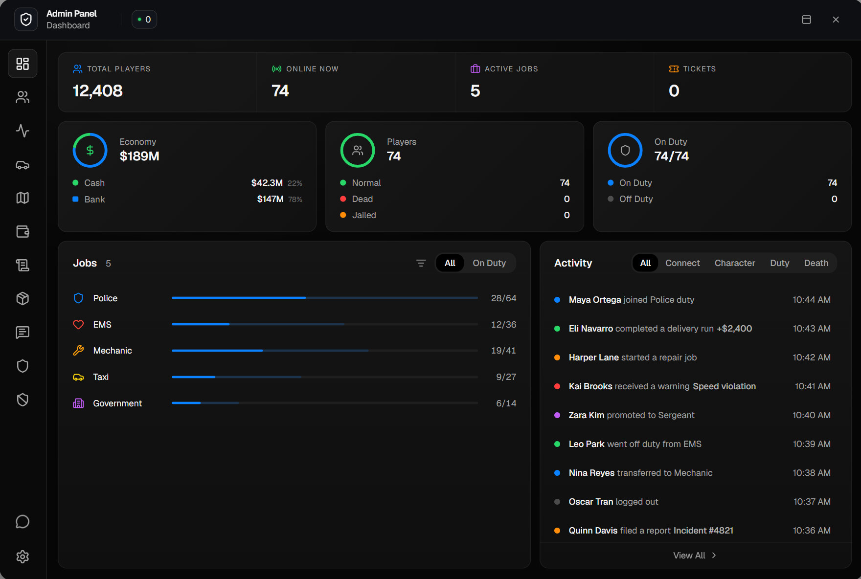 Standalone Web Panel - a future standalone web interface that works alongside the in-game resource. This will allow administrators to access the panel from anywhere through a browser, without needing to be logged into the server.